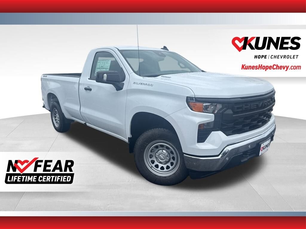 Summit White 2026 Chevrolet Silverado 1500 WT 4WD 8-Speed Automatic 2.7L I4 Turbocharged DOHC 16V LEV3-SULEV30 310hp 8-Speed Automatic, 4WD, Jet Black Vinyl.Also included with every new vehicle we sell: LIFETIME NO FEAR WARRANTY, FIRST OIL CHANGE, and AT HOME COURTESY DELIVERY! Call us for full details! We pride ourselves on honesty and integrity, but please note that mistakes or misprints due to human error are possible. Find out why our dealerships have won DealerRater.com DEALER OF THE YEAR a whopping 10 TIMES! Call, email, or live chat with one of our friendly sales professionals now to schedule your test drive! Prices shown do not include tax, title, registration and $499 service fees. Price includes: $1000 - GM Bonus Cash. Exp. 11/03/2025 $1750 - Chevrolet Consumer Cash Program. Exp. 11/03/2025