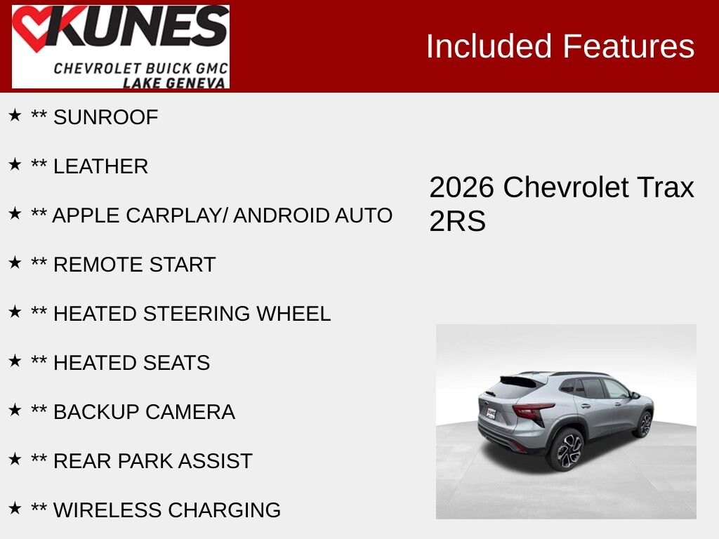 Whether you're navigating the city streets or embarking on a weekend adventure, the 2026 Chevrolet Trax 2RS is the perfect companion, offering a seamless blend of style, performance, and technology. Experience the difference for yourself by scheduling a test drive today.