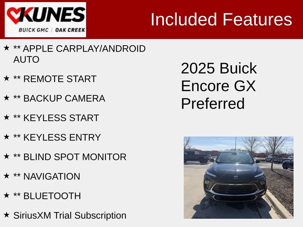 2025 Buick Encore GX Preferred ECOTEC 1.3L Turbo 9-Speed Automatic AWD CARFAX One-Owner. Clean CARFAX. 26/28 City/Highway MPG