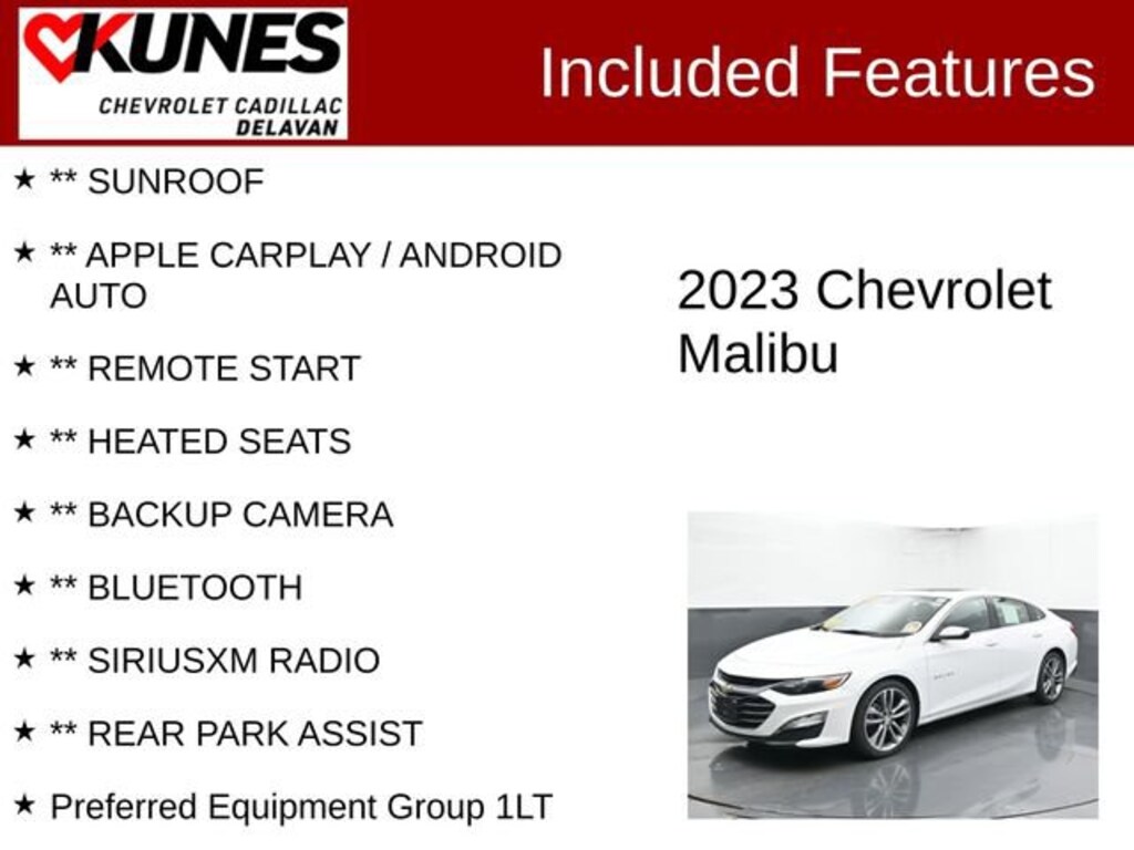 2023 Chevrolet Malibu LT 1LT Summit White FWD 1.5L DOHC