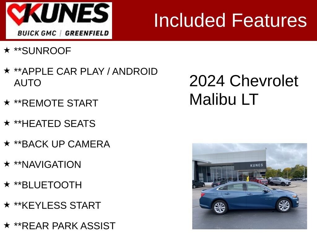 Sunroof/moonroof included Rear parking sensors and backup camera Heated front seats Lane keep assist and lane departure warning Turbocharged 1.5L 4-cylinder engine Remote engine start Power driver seat with adjustable lumbar support Front collision warning with collision mitigation Automatic highbeam headlights Keyless entry and push-button start Multi-zone climate control air conditioning WiFi hotspot and Bluetooth connectivity Apple CarPlay and Android Auto compatibility Power heated mirrors Pass-through rear seat and rear air vents Satellite radio and AM/FM radio Rear defrost and rear seat armrest with cup holders Aluminum wheels and performance tires Stability and traction control Tire pressure monitoring system