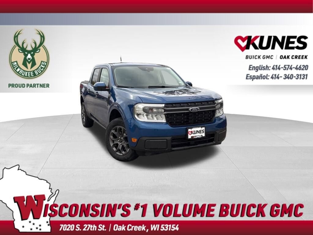 2023 Ford Maverick XLT Atlas Blue Metallic FWD 2.5L I-4 HybridRecent Arrival! Clean CARFAX. LUXURY PACKAGE adds power driver seat, heated mirrors, and more comfort features. Remote start system and keyless entry for easy access and convenience. Trailer hitch receiver included for towing capability. Power 8-way driver seat for personalized comfort adjustment. Apple CarPlay and Android Auto compatible for smartphone integration. Dual-zone automatic climate control for personalized front comfort. Rearview camera and electronic parking brake. Cruise control and power windows with one-touch driver up/down. Fold-flat rear seats and dual sliding sunvisors. 17 painted aluminum wheels and black door handles. LED auto high-beam headlights and wiper-activated headlamps. Power tailgate lock and power mirrors. Two USB ports and 8-inch color touchscreen display. 6-speaker audio system with AM/FM stereo. Battery saver feature for added convenience. FordPass Connect with remote start from app and remote vehicle status. Tire pressure monitoring system. Advanced safety canopy and blind-spot mirror. Pre-collision assist with automatic emergency braking. Personal safety system, secures anti-theft sys, perimeter alarm. 37 MPG combined EPA fuel economy.