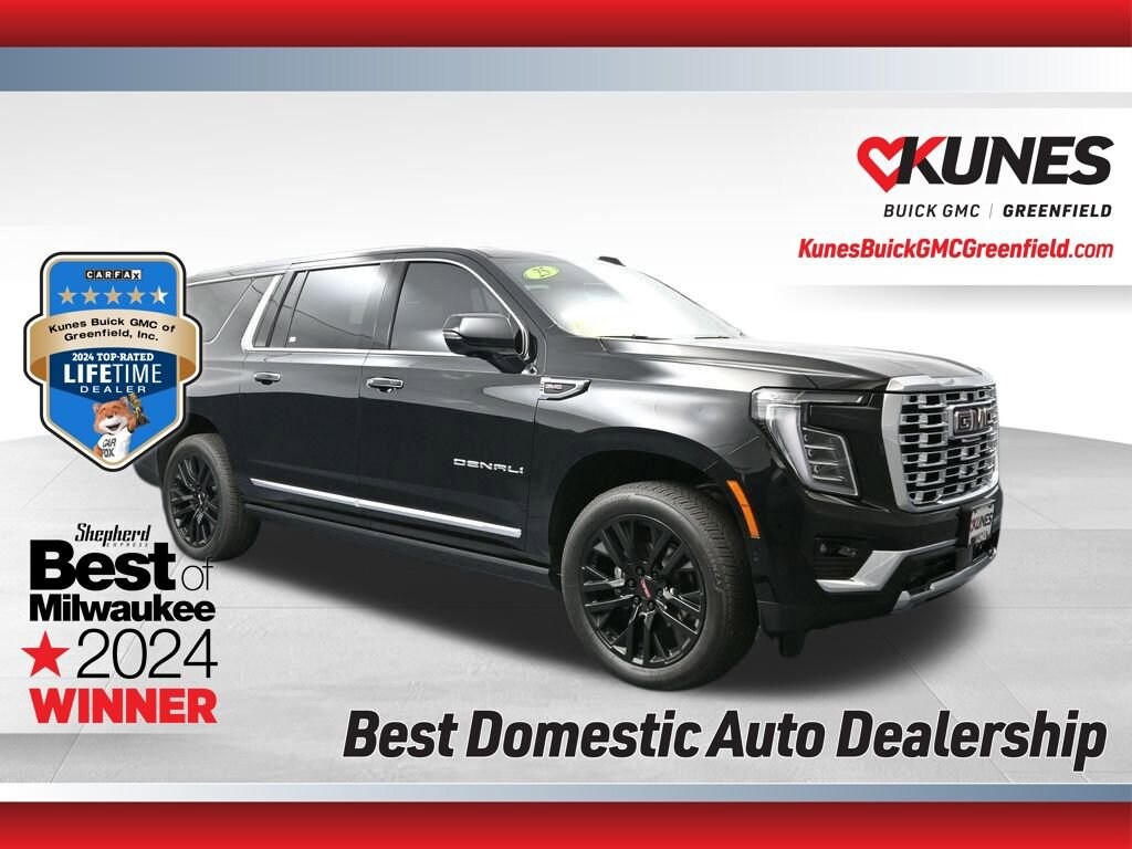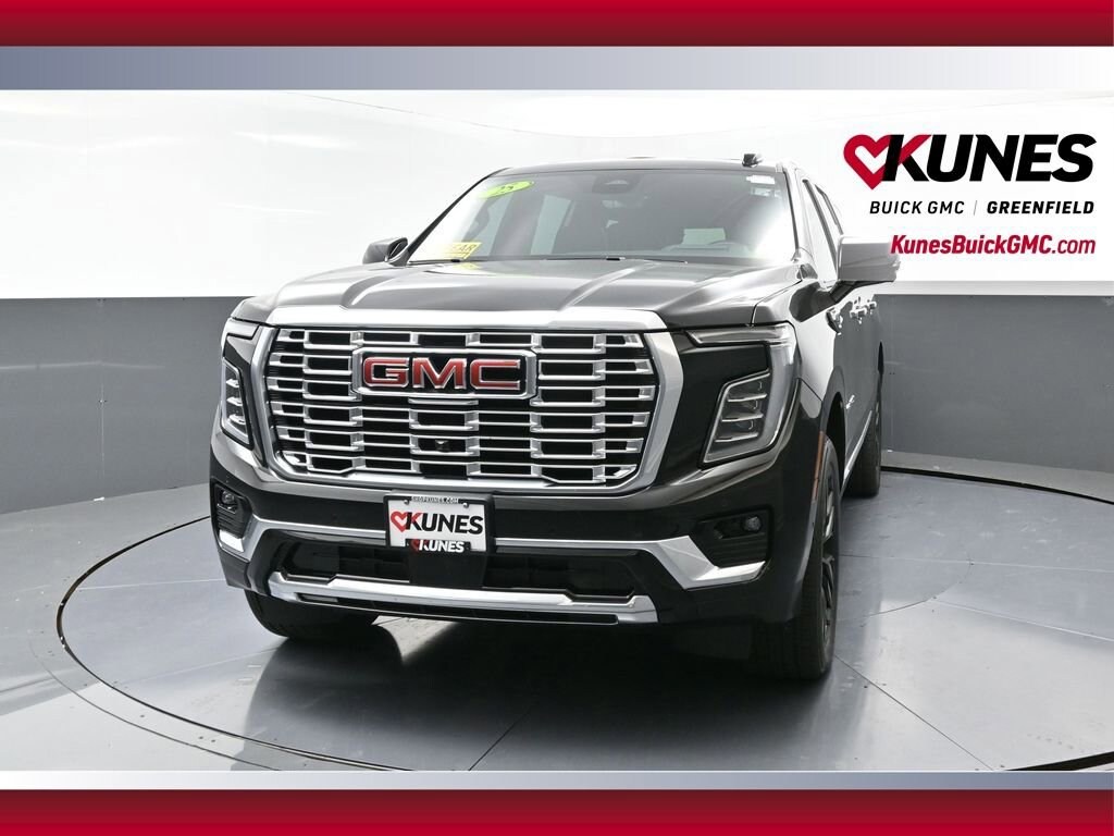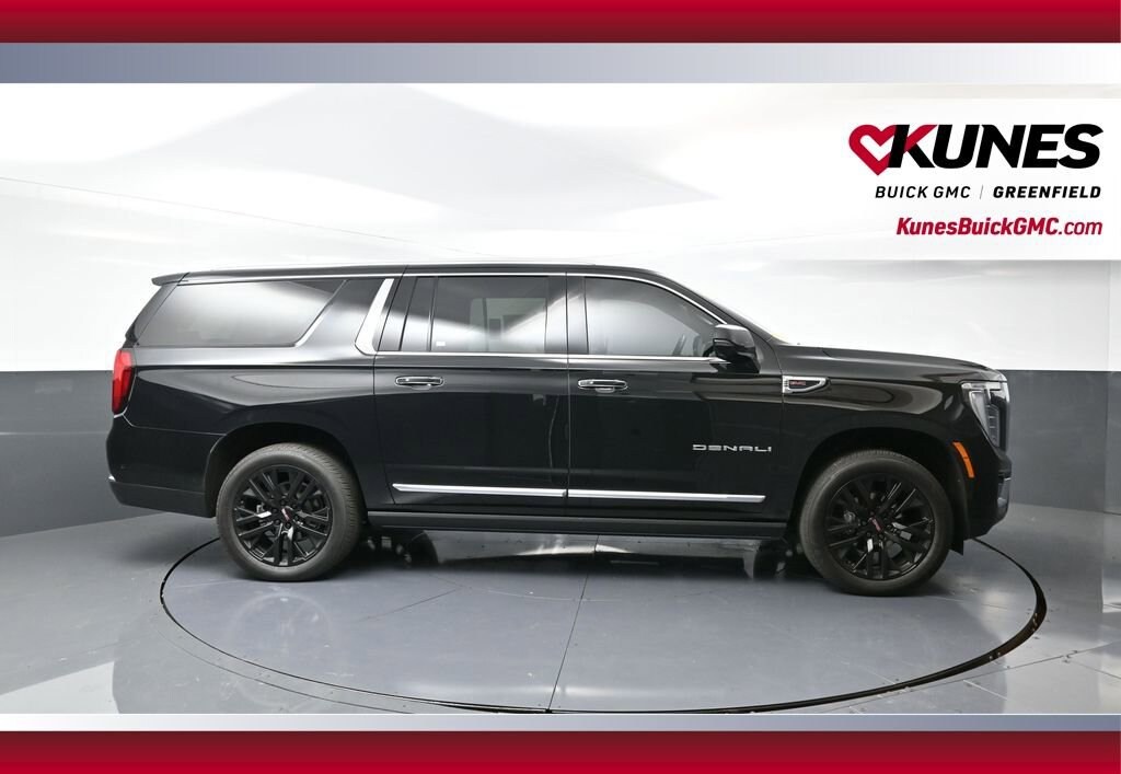Denali Reserve Package: panoramic roof, sun/moonroof, power retractable running boards, chrome wheels, running boards Advanced Technology Package: adaptive cruise control, backup camera, lane keeping assist, cross lane alert, driver monitoring Max Trailering Package: blind spot monitoring, trailering tech, trailer hitch, evasion assist Air suspension for a smoother ride Premium sound system and navigation with Bluetooth connectivity Leather heated seats with adjustable steering wheel Power liftgate and remote trunk release 6.2L V8 engine, 10-speed automatic, four-wheel drive Locking/limited slip differential and active suspension Rear parking sensors, aerial view display system Front and rear air conditioning, multi-zone climate control Heads-up display for easy viewing of key info Automatic highbeams and front collision mitigation Wood-accented interior trim, bucket seats, power steering Fog lamps, daytime running lights, privacy glass Conventional spare tire, luggage rack Hill descent control, trailer brake controller WiFi hotspot and satellite radio Multiple airbags throughout, child safety locks