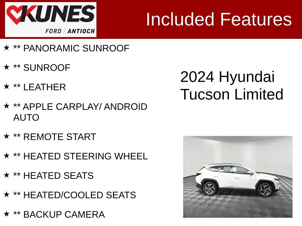 2024 Hyundai Tucson Limited White Pearl AWD 2.5L I4 DGI DOHC 16V LEV3-SULEV30 187hp