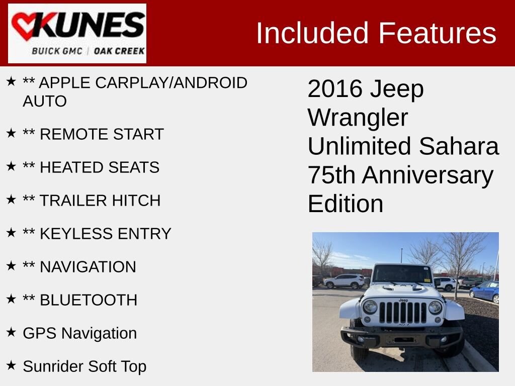 Used 2016 JeepWrangler JK Unlimited Sahara 4x4