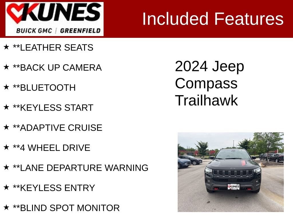 Diamond Black Crystal Pearlcoat exterior Premium sound system Heated mirrors Adaptive cruise control Blind spot monitor Lane departure warning and lane keeping assist Back-up camera Front collision mitigation Tow hooks and 4 skid plates 10.1 touchscreen display Bluetooth connection, HD Radio, satellite radio WiFi hotspot and smart device integration Part and full-time four-wheel drive 2.0L I-4 turbocharged engine with 8-speed automatic Automatic headlights, LED daytime running lights, fog lamps Rain-sensing wipers and variable speed intermittent wipers Leather steering wheel and adjustable steering wheel Pass-through rear seat, rear bench seat Multi-zone automatic climate control Rear spoiler, all-terrain tires on aluminum wheels Power windows, keyless entry, push-button start