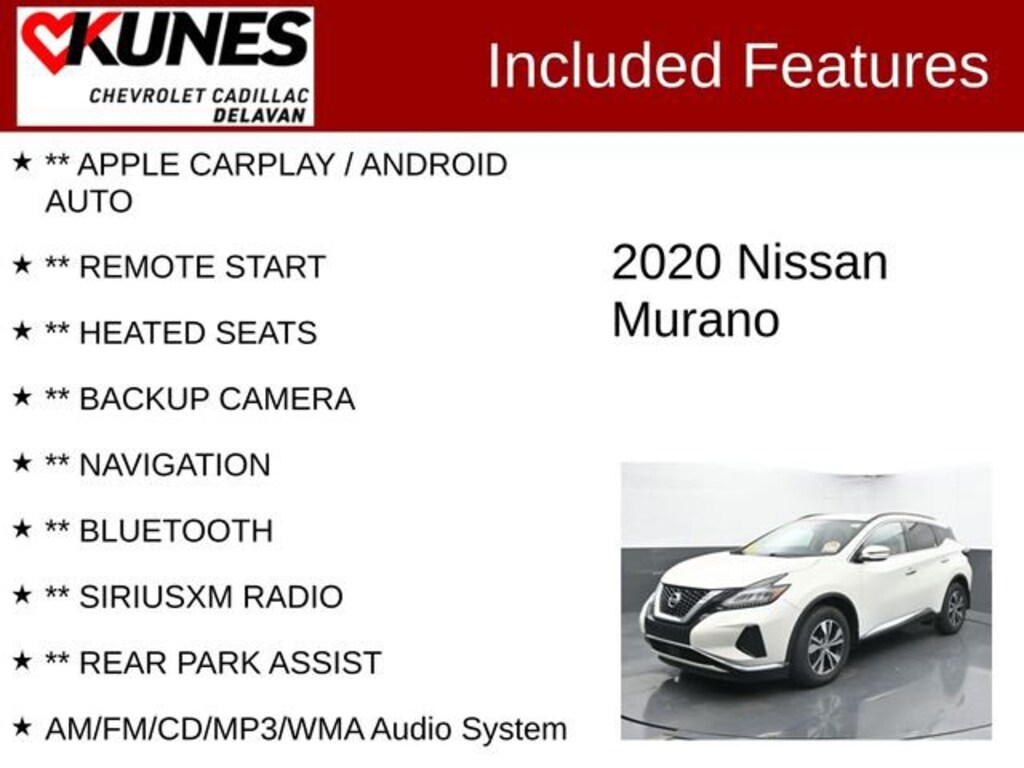 2020 Nissan Murano SV Pearl White Tricoat AWD 3.5L V6 DOHC 24V