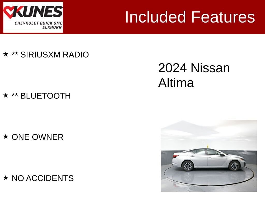 2024 Nissan Altima 2.5 SV 2.5L 4-Cylinder DOHC 16V CVT with Xtronic FWD Clean CARFAX. CARFAX One-Owner. 27/39 City/Highway MPG