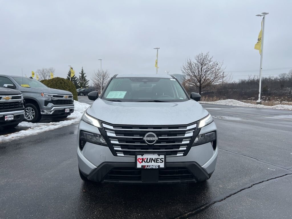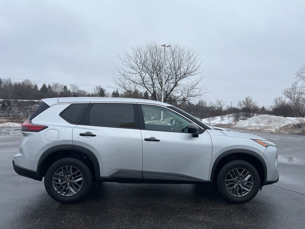 2024 Nissan Rogue S Brilliant Silver Metallic AWD 1.5L DOHCRecent Arrival! Clean CARFAX. CARFAX One Owner. Includes factory-installed floor mats, cargo area protector, seatback protector, and first-aid kit All-wheel drive with selectable drive modes for various terrains Nissan Safety Shield 360 with automatic emergency braking and rear cross traffic alert Apple CarPlay® and Android Auto smartphone integration 17 alloy wheels and LED headlights for enhanced visibility Intelligent lane departure warning with blind spot warning High beam assist for better nighttime driving Cruise control and rear door alert for added convenience Forward collision warning and rear automatic braking Six-speaker audio system with a 6-speaker touchscreen display Intelligent auto headlights and LED signature daytime running lights Dual front, side, and curtain airbags for occupant safety LATCH system for child seat anchors Voice recognition for hands-free control Tire pressure monitoring system Remote keyless entry EPA-rated fuel economy up to 31 MPG combined Anti-lock brakes with electronic brake force distribution Hill start assist for easier uphill starts Vehicle Dynamics Control for stable handling