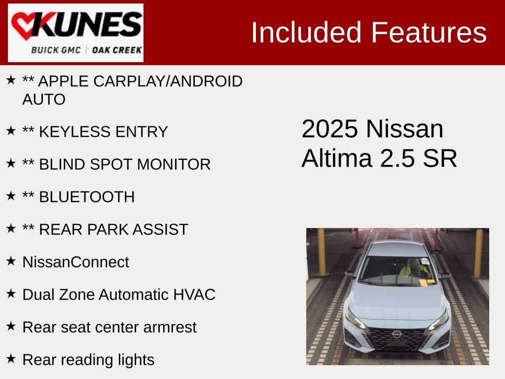 2025 Nissan Altima 2.5 SR 2.5L 4-Cylinder DOHC 16V CVT with Xtronic FWD CARFAX One-Owner. Clean CARFAX. 27/37 City/Highway MPG